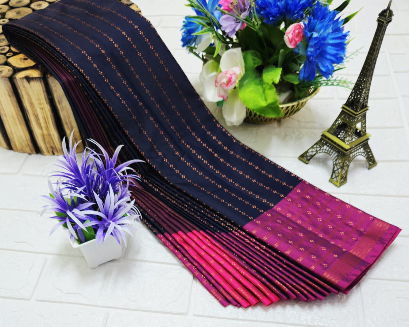 Our silk sarees are made from high-quality, pure silk fabric, ensuring durability, comfort, and a rich, natural sheen that captivates. The intricate patterns and detailed designs showcase the artistry that goes into creating each one, making them a cherished addition to your wardrobe.
