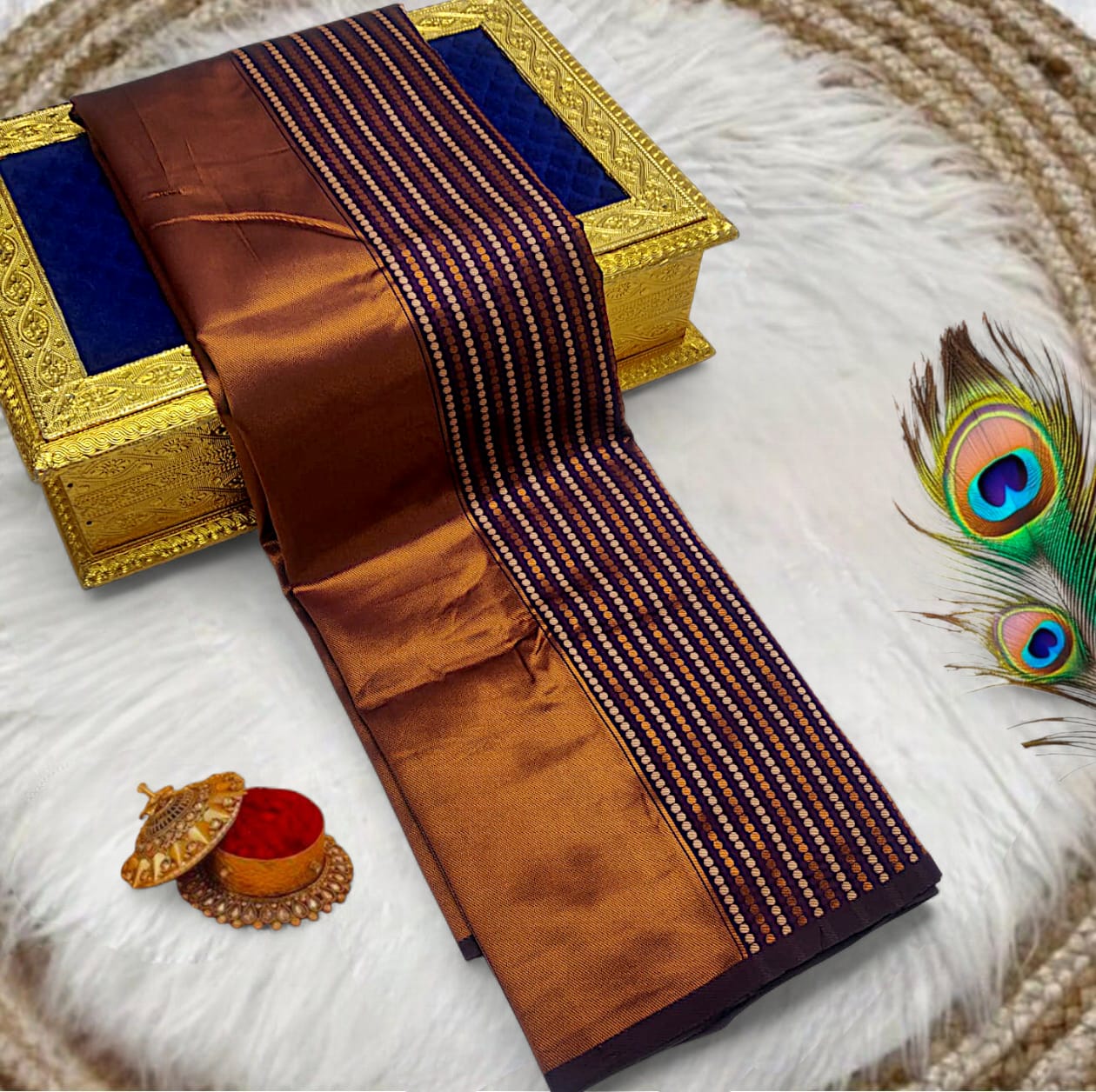Available in a stunning array of colors and intricate motifs, these sarees cater to diverse tastes. Whether you prefer bold patterns or subtle elegance, Kaanjipuram Style Soft Silk Sarees are here to complement your unique style.